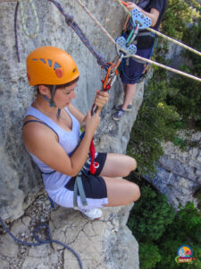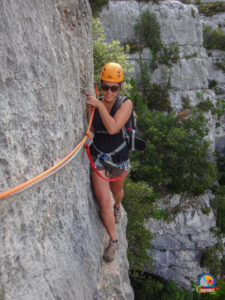 “Via ferrata” vient de l’italien “voie ferrée”. L’armée italienne a en effet développé ce concept pour permettre à ces troupes de franchir des passages escarpés plus facilement, notamment dans les Dolomites. Aujourd’hui c’est une activité sportive où on évolue sur des falaises parsemées de câbles, d’échelles, de ponts de singe, de ponts himalayens, de tyroliennes… Pour cela, les pratiquants sont équipés d’un baudrier, d’un casque, d’une paire de longes et d’une poulie.